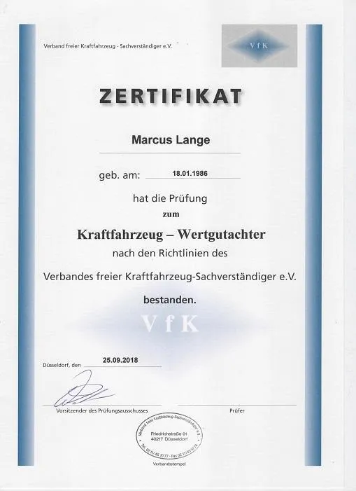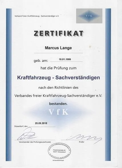 Offiziell anerkannter Sachverständiger und Kfz-Gutachter für Ihre Sicherheit